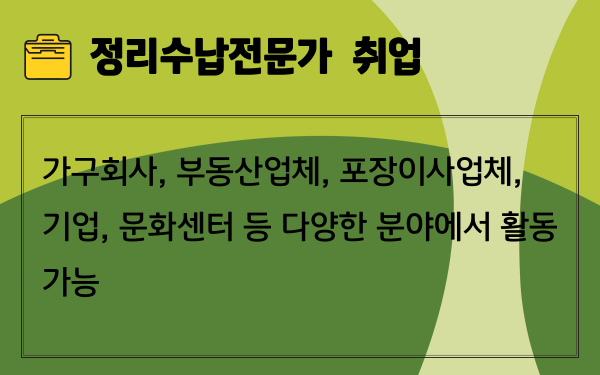 - 창업 기회: 자신만의 정리수납 서비스 업체를 창업하여 독립 경영 가능.