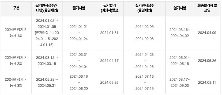 아래에서 자세한 시험일정, 국비지원 수업방법, 공개문제, 2024년 새로운 출제기준에 대해서 알아보겠습니다.
