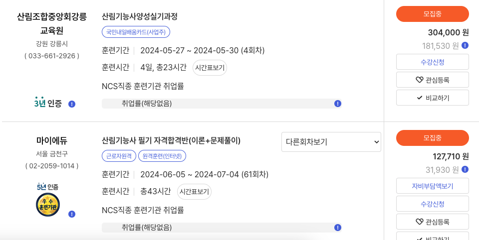 * 산림기능사 시험일정 확인후, 기간에 맞추어 국비 교육을 들으실 것이라면 내일 배움 카,=드가 필요합니다.