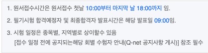 | 회차 | 원서접수 | 시험일 | 합격자 발표 |