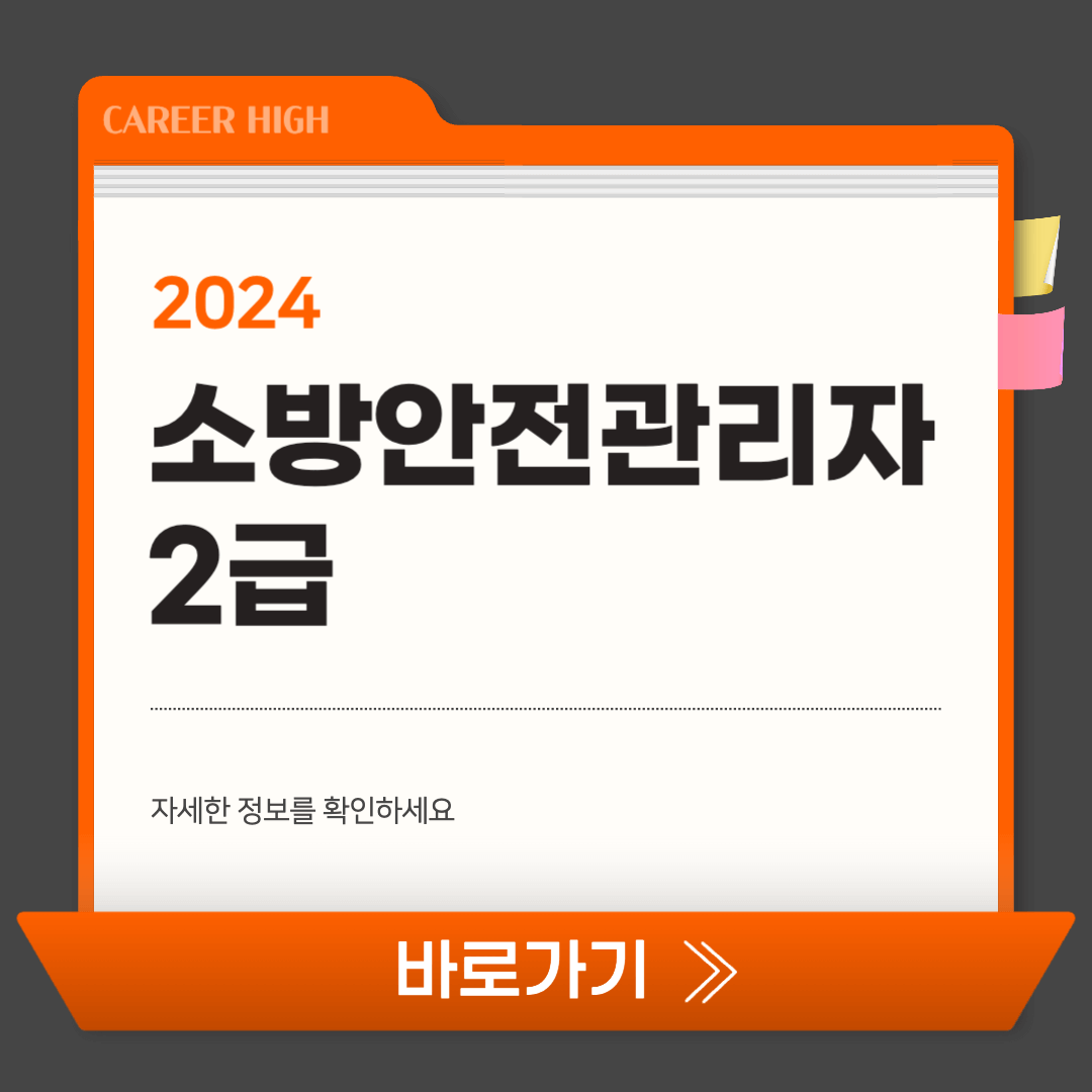 더불어 아래에서 소방안전관리자 2급의 응시자격과 시험일정, 출제기준, 기출문제 등에 대해서 확인하세요.